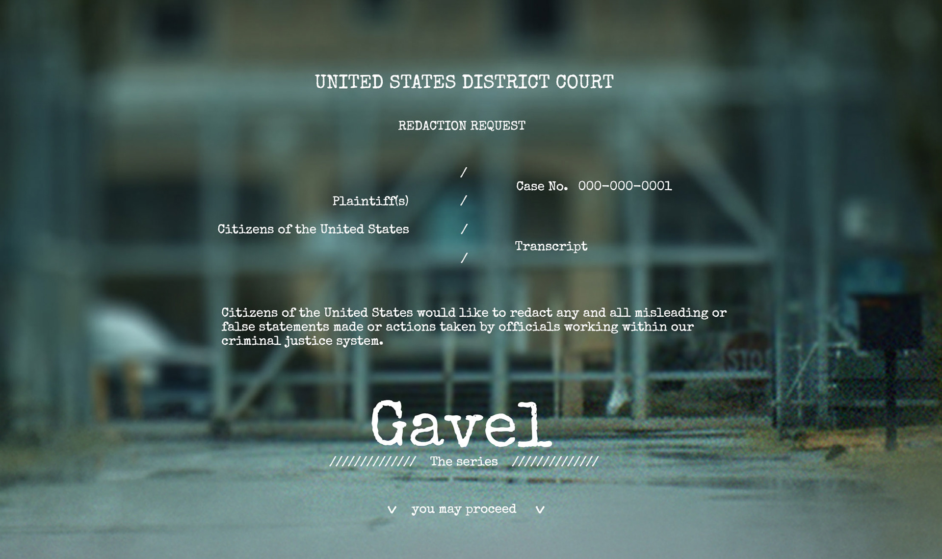 Gavel is a retelling of american legal procedure from the defendent's perspective. It tackles verifiable and compelling stories where our legal system has failed real people.